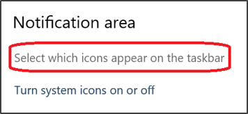 2) In the Taskbar Settings window, scroll down to the 'Notifications area'. Click the 'Select which icon appears on taskbar' option.