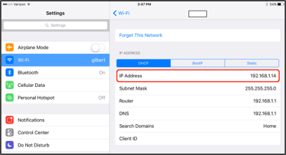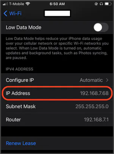 2) The IP Address of your device will be shown in grey in the IP Address row.
