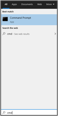 2) Type 'cmd' into the Start Bar and open Command Prompt.