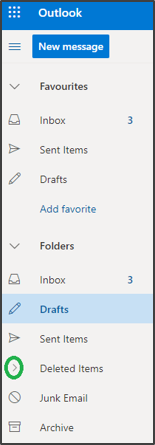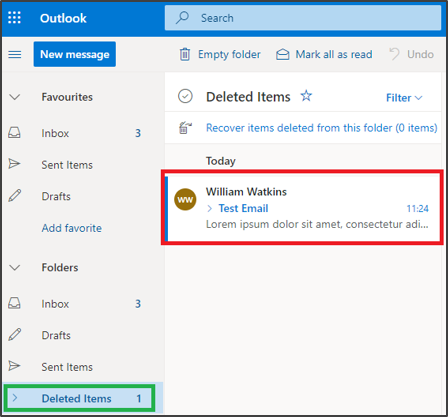 1) In the Outlook web client, click on 'Deleted Items' on the left-hand menu.