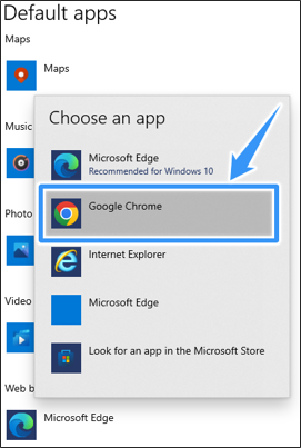 3. Select the Google Chrome browser option. Your selection will automatically save, and you can now close the Settings window.