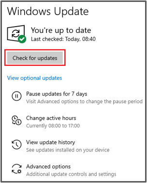 2) Select Check for updates, and wait for the device to detect any updates. This may take up to a minute.