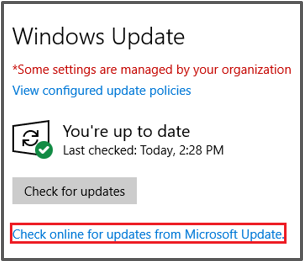 3) You may receive an error when trying to retrieve updates. Alternatively, your device may tell you that you that it cannot detect any updates, when you know that there are available updates. In these cases, select the 'Check online for updates from Microsoft Update' link, and allow your device to search online for updates. This requires an internet connection, and may also take a couple of minutes.