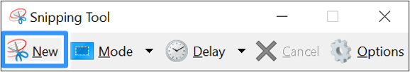 3. To 'snip' a section of your current screen, select New. Your screen will then desaturate, and your cursor will become a click-and-drag selector for the area of the screen you would like to screenshot. If you are unhappy with your initial screenshot's contents, simply select New and try again.