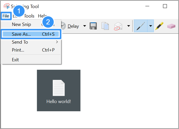 4. Once you're happy with your screenshot, you can save it by going to File > Save As. Additionally, any screenshot you take will automatically be copied to your clipboard.